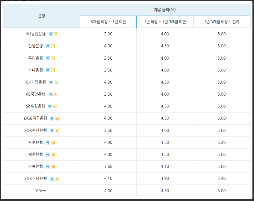 기본금리는 5%지만 은행마다 각기 다르고 지금 작성하는 기준 우리은행이 6.0%로 최대입니다.